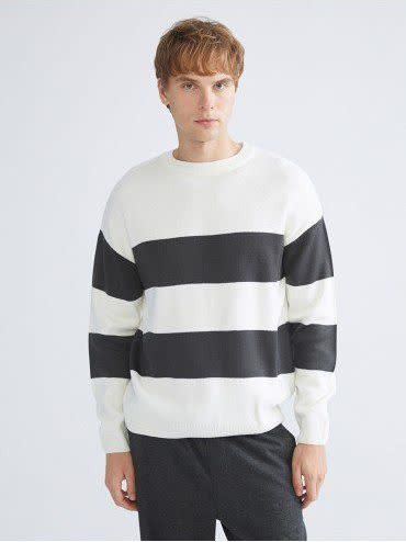 بافت وینگر ارجینال_ سفید با خطوط طوسی-یقه گرد