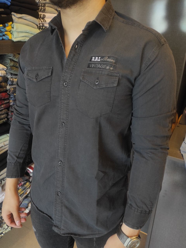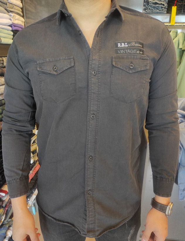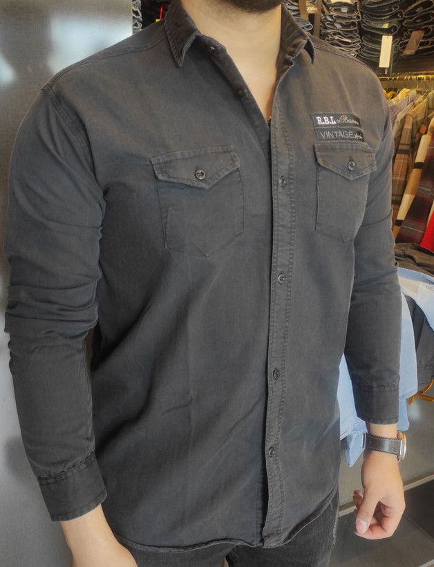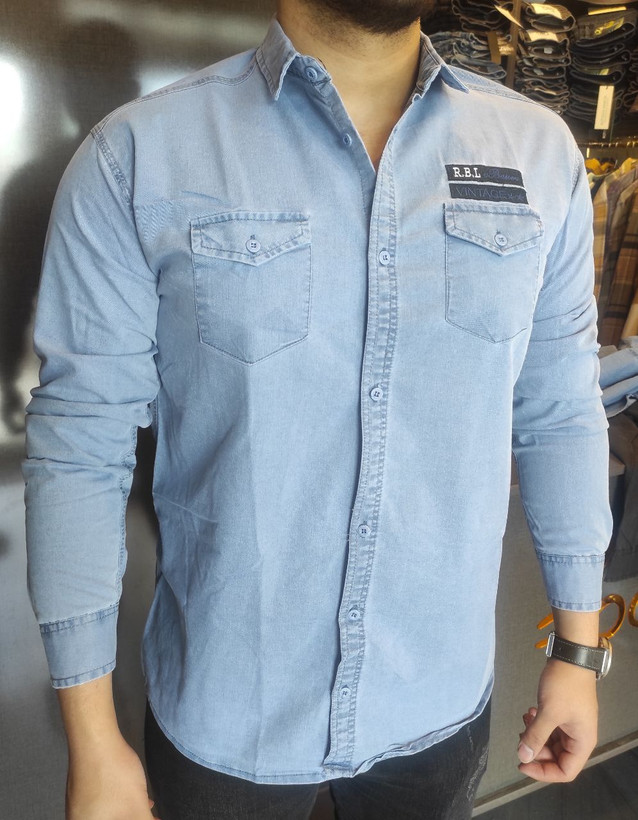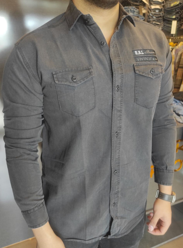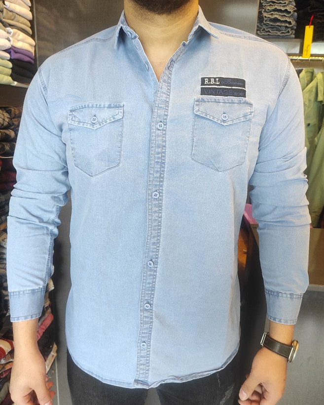 پیراهن لی مردانه آستین بلند دو جیب پارچه ترک رنگبندی کامل