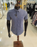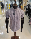 پیراهن مردانه آستین کوتاه نخی مدل راه راه ریز