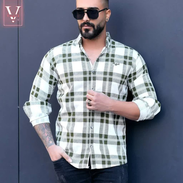 پیراهن چهارخانه مردانه آستین بلند تمام نخ (دوخت ترک)