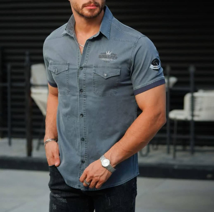 پیراهن کتان مردانه دوخت شرکت L CON -آستین کوتاه رنگبندی کامل