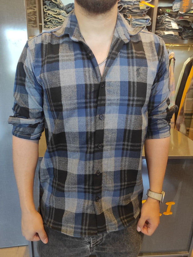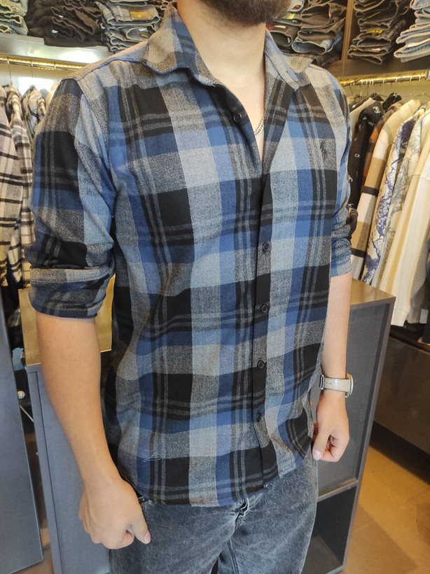 پیراهن پشمی مردانه اورجینال POLO آبی مدل چهارخانه