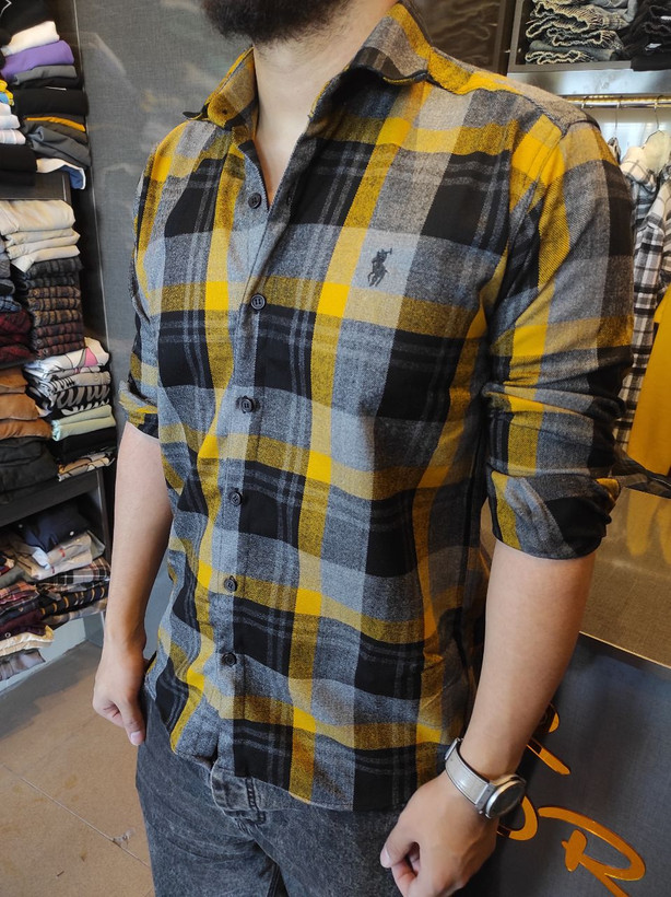 پیراهن پشمی مردانه اورجینال POLO زرد مدل چهارخانه