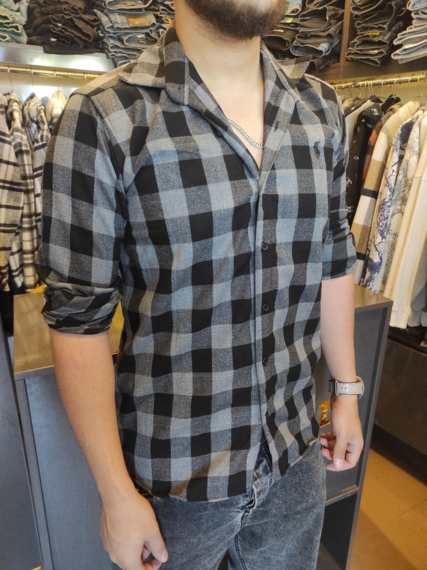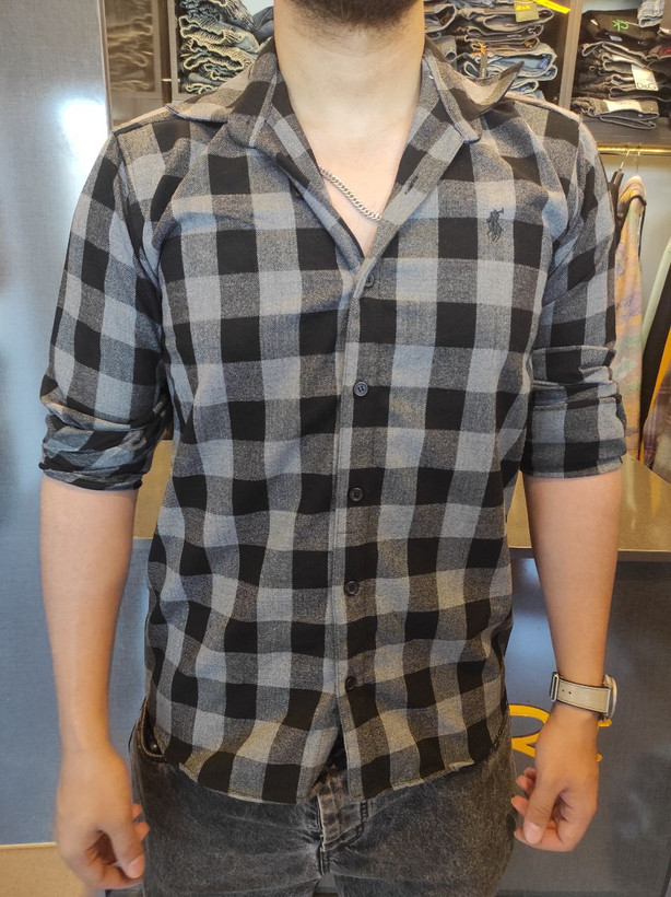 پیراهن پشمی مردانه اورجینال POLO پولو رنگ مشکی چهارخانه