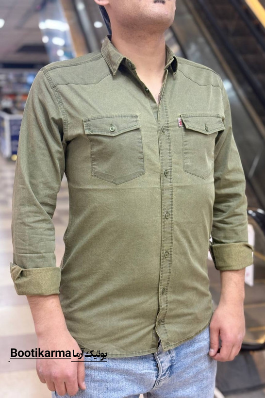 پیراهن کتان مردانه آستین بلند ساده دو جیب کرمی سبز دودی ذغالی اورجینال ترک