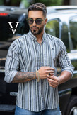 پیراهن آستین بلند دنیم راه راه کشی اندامی