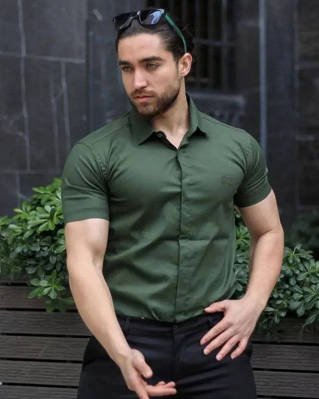 استایلهای پیشنهادی با پیراهن آستین کوتاه مردانه تک رنگ با تنخوری و کیفیتی بسیار عالی