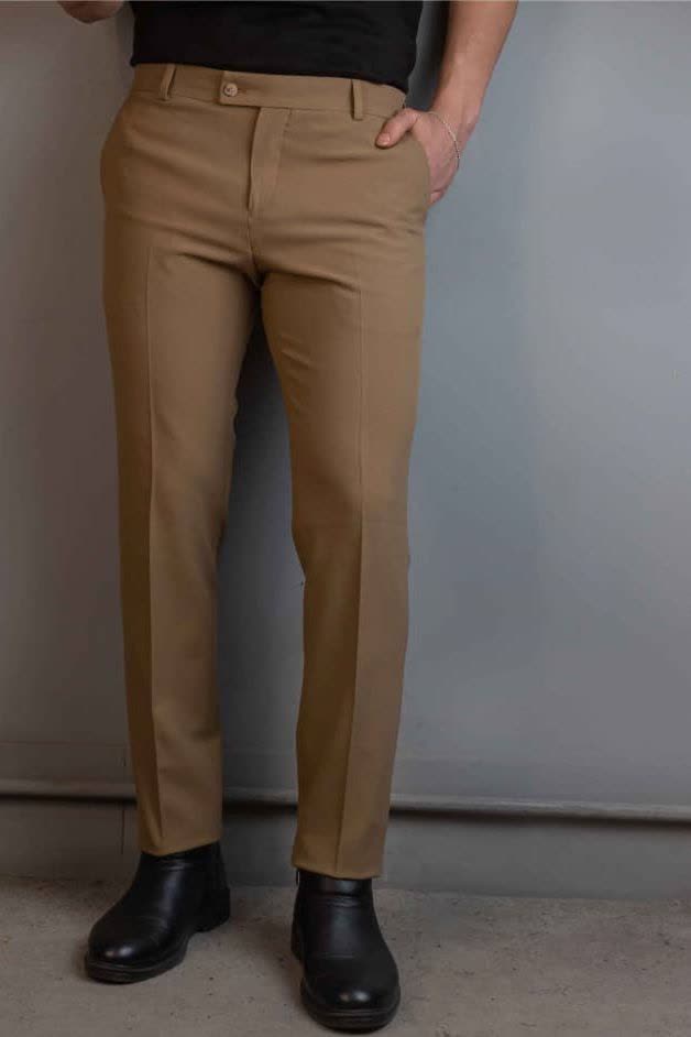 شلوار پارچه ای پارچه ای قهوه ای دوبر کش فول کش درجه یک ارجینال با تنخوری عالی