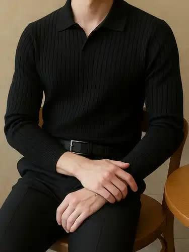 بلوز نیم یقه مراکشی مردانه اورجینال استایل اولد مانی old money رنگ مشکی