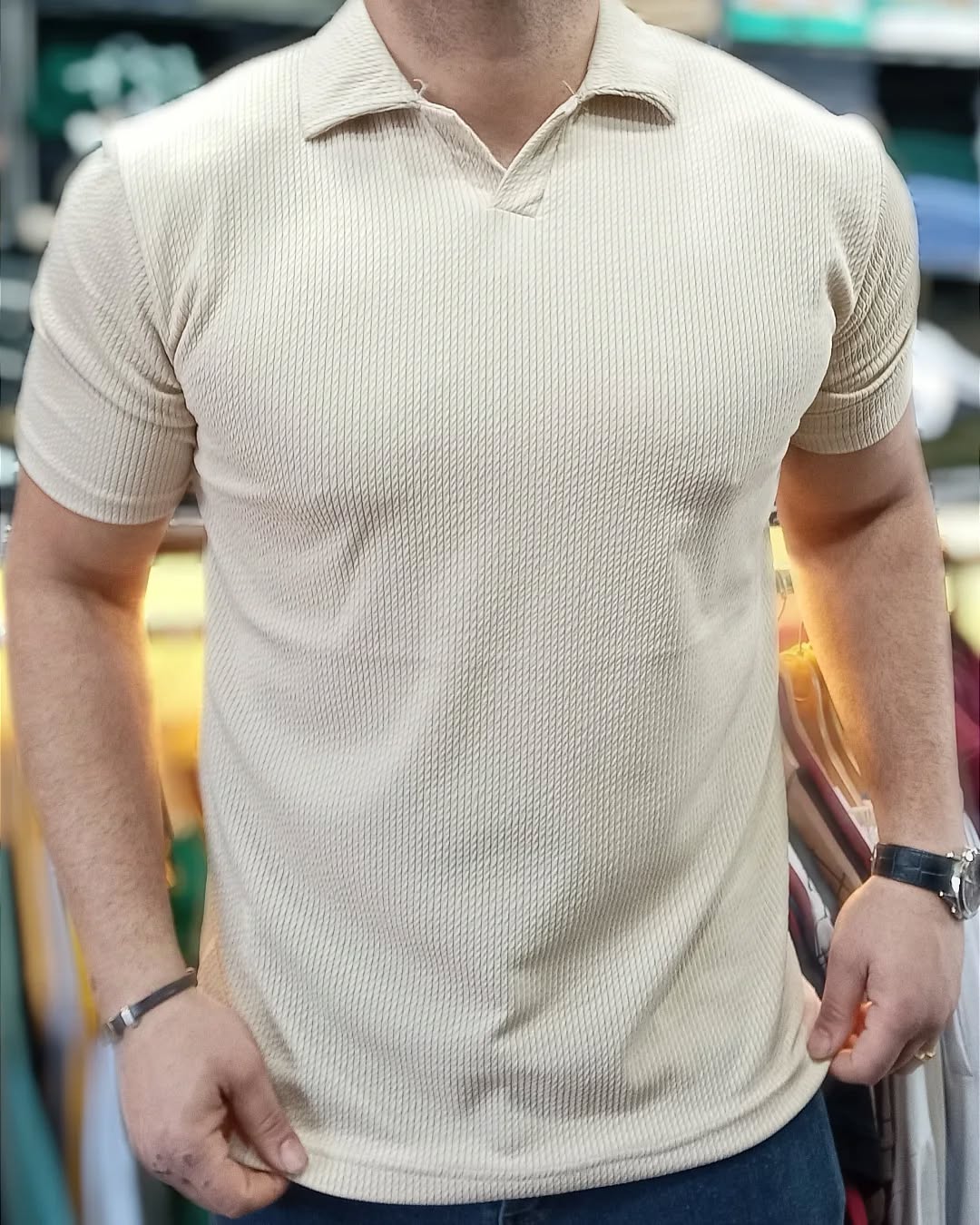 🔹 تابستانی: تیشرت رنگ روشن + شلوارک کتان = خنکای تابستان با ظاهری مرتب
