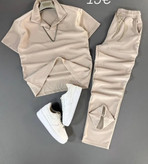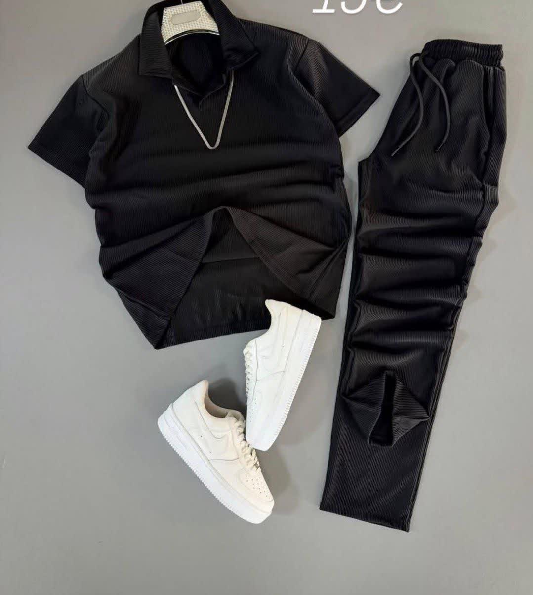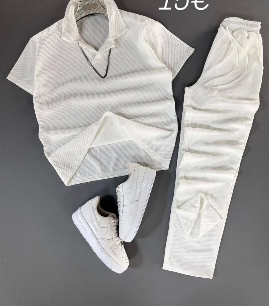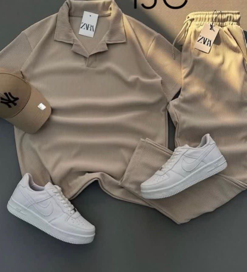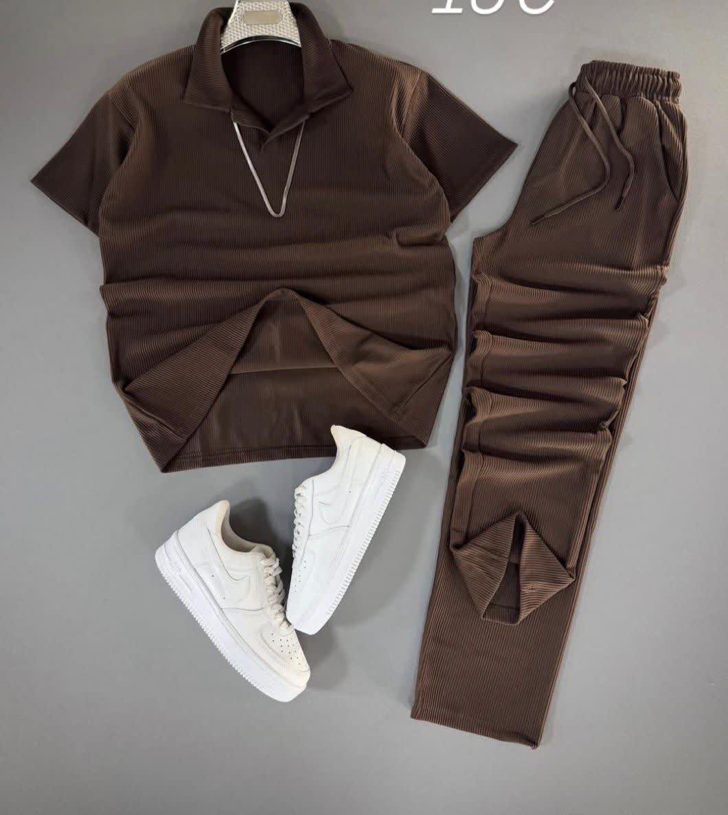 - ست مراکشی ترک مدل یقه دار مردانه: آقایان میتوانند با کفشهای کتانی سفید یا نیمهرسمی، این ست را برای قرارهای کاری غیررسمی یا گردشهای آخر هفته بپوشند. اضافه کردن یک ساعت مچی چرمی یا یک کلاه کپ، استایل مردانه را تکمیل میکند.