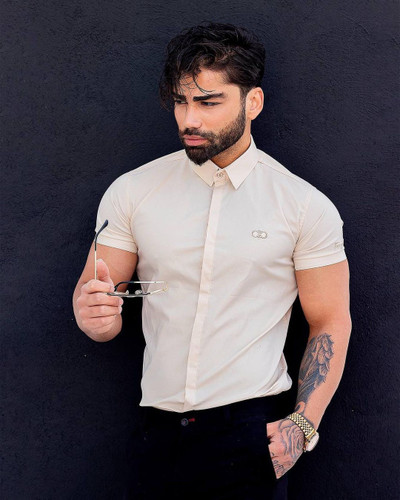 پیراهن مراکشی بیسکوییتی برند مچینست آستین کوتاه مردانه - درجه یک