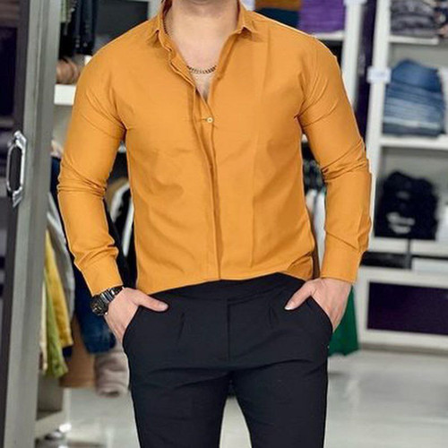 پیراهن آستین بلند مردانه ساتن تک رنگ اورجینال