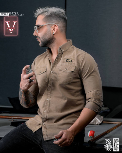 پیراهن لی مردانه آستین بلند دو جیب پارچه ترک رنگبندی کامل