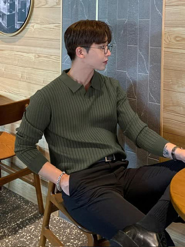 بلوز نیم یقه مراکشی مردانه اورجینال استایل اولد مانی old money -ارجینال (یشمی رنگ)