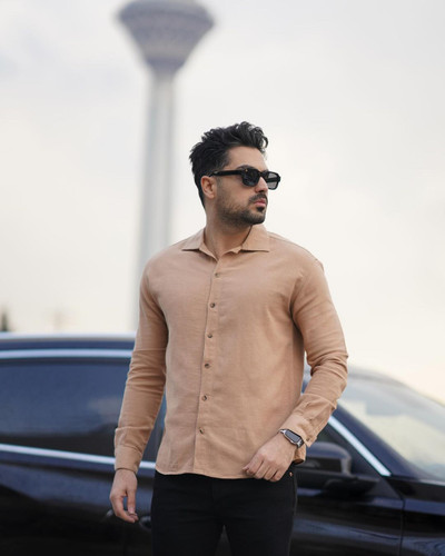 پیراهن مردانه آستین بلند دکمه مخفی ساتن ترک رنگبندی کامل