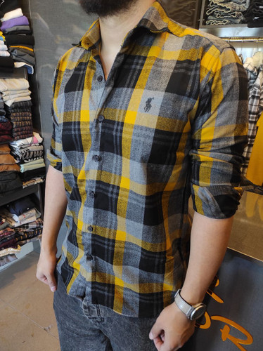پیراهن پشمی مردانه اورجینال طرح POLO چهارخانه دو جیب