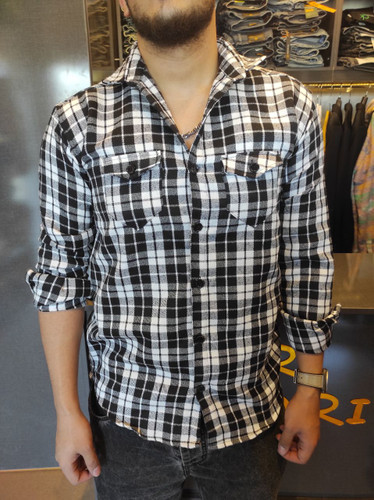 پیراهن پشمی مردانه اورجینال رنگ مشکی چهارخانه ریز دو جیب