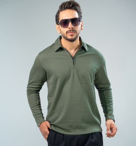 بلوز نیم یقه مراکشی مردانه اورجینال استایل اولد مانی old money -ارجینال (سبز رنگ)
