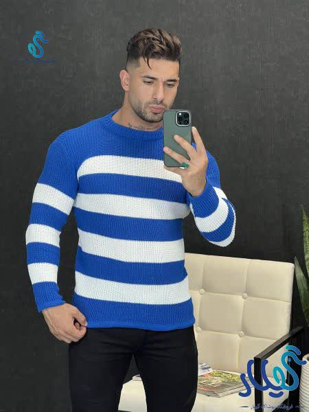 بافت وینگر ارجینال_ آبی با خطوط سفید