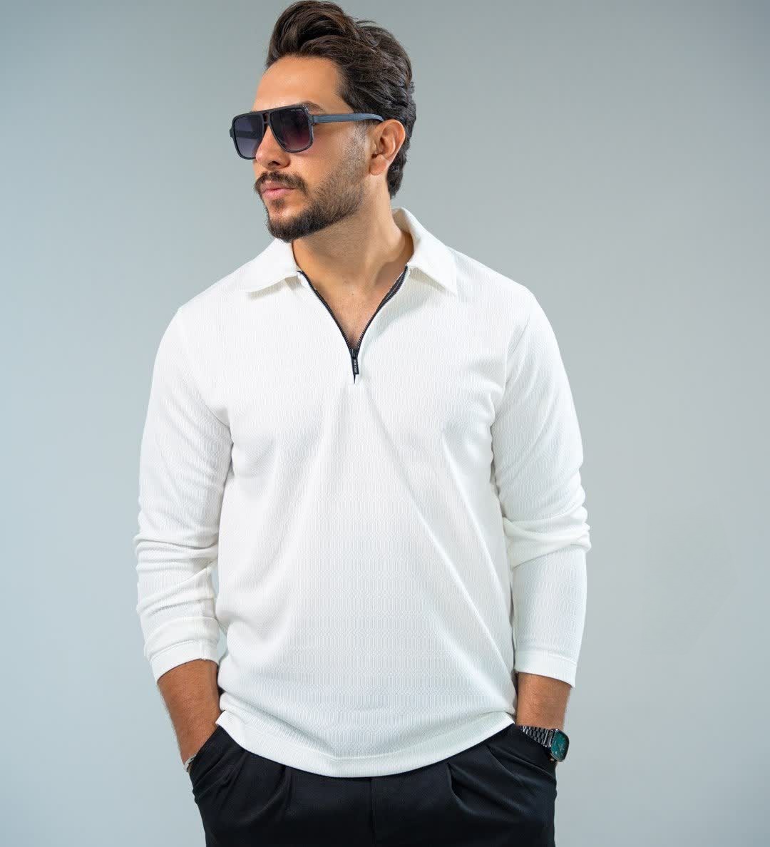 تیشرت نیم زیپ نیم یقه مراکشی مردانه اورجینال استایل اولد مانی old money -ارجینال