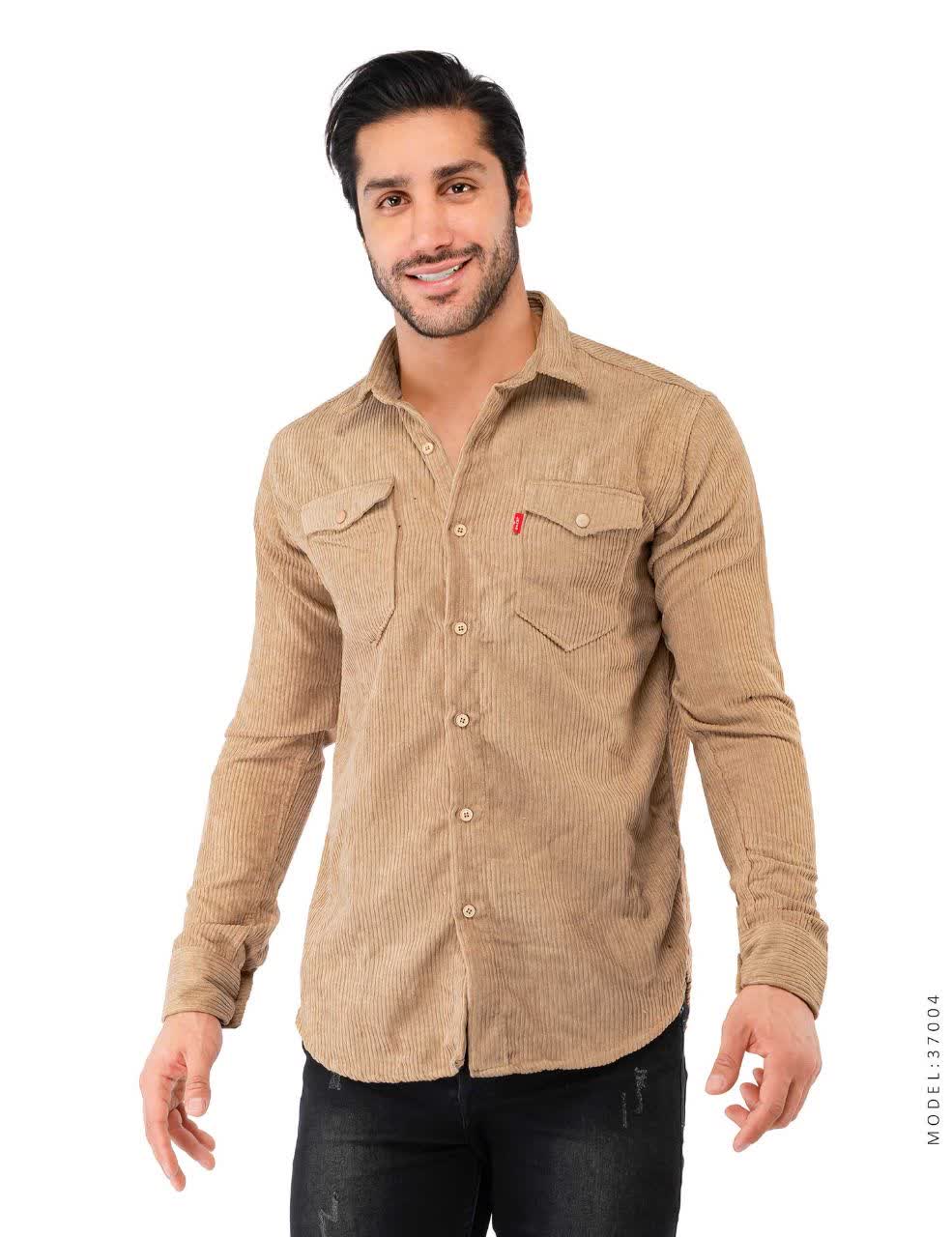 پیراهن کبریتی راه راه ریز مردانه اورجینال ترک رنگ کرم